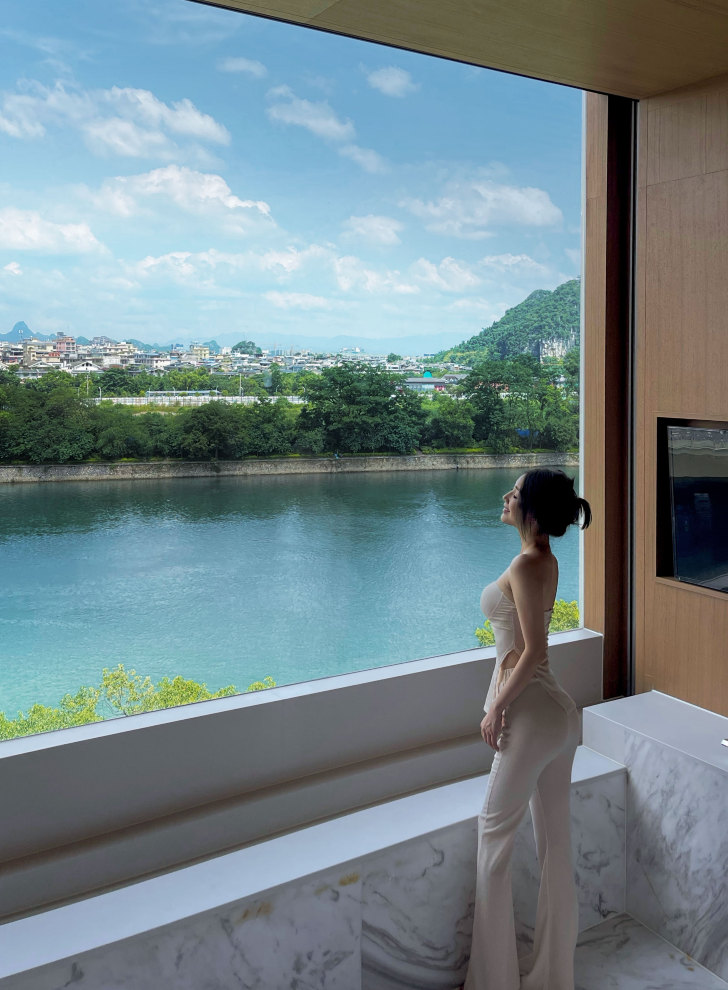 漓江桥畔观景双床房|远眺江景+喀斯特羣山+夕阳晚霞